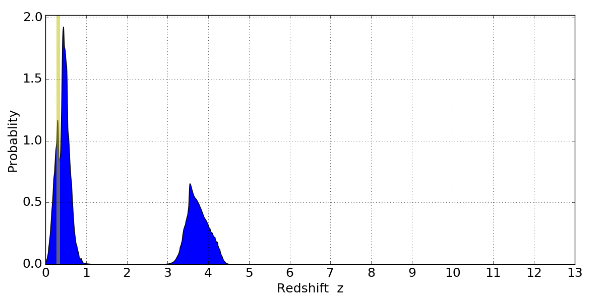 Best viewed in a wide browser window (1200 pixels or more). Download SED & P(z) plots to view larger versions.