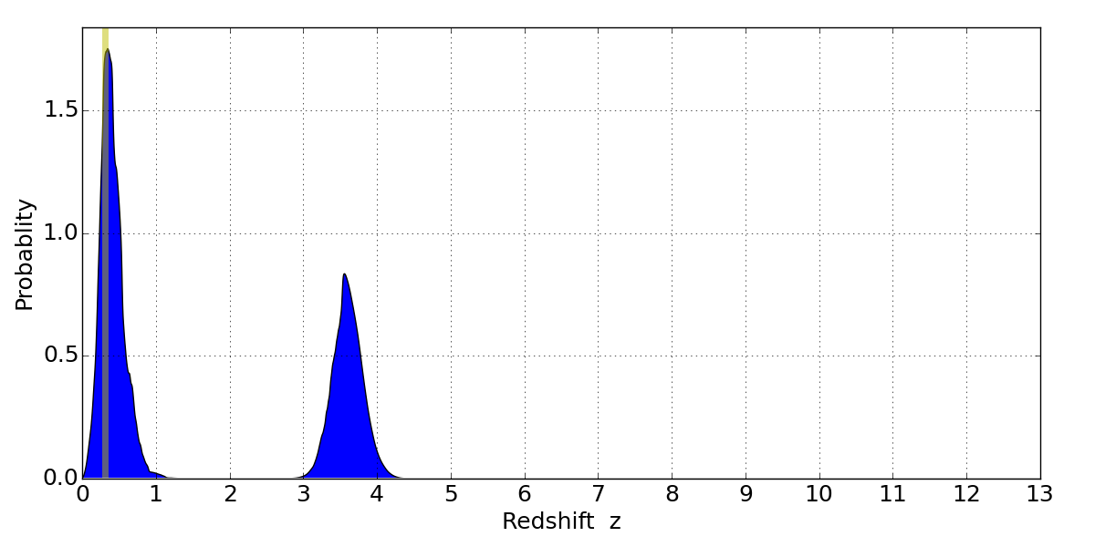 Best viewed in a wide browser window (1200 pixels or more). Download SED & P(z) plots to view larger versions.