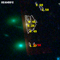 Object #1152   x,y = (3857, 3565)   RA, Dec = (13:32:45.888, 50:32:36.96) = (203.19120, 50.54360)   BPZ = 0.488 [0.334--3.896]   type = 5.40 (ES0_B10 - Sbc_B10)   chisq2 = 0.10   ODDS = 0.37   z_cluster = 0.280