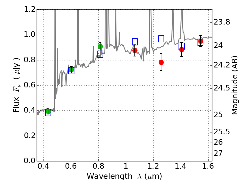 Object #528   x,y = (3983, 4676)   RA, Dec = (13:32:45.096, 50:33:43.92) = (203.18790, 50.56220)   BPZ = 0.304 [0.203--0.406]   type = 9.40 (SB2_B10 - SB3_B10)   chisq2 = 1.41   ODDS = 0.80   z_cluster = 0.280