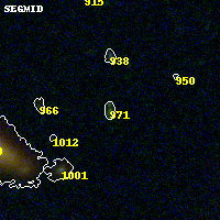 Object #971 x,y = (5886, 3930) RA, Dec = (13:32:33.120, 50:32:58.92) = (203.13800, 50.54970) BPZ = 3.726 [3.618--3.831] type = 10.20 (SB3_B10 - SB11_A_0_l) chisq2 = 0.22 ODDS = 1.00 z_cluster = 0.280