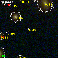 Object #884 x,y = (5004, 4086) RA, Dec = (13:32:38.664, 50:33:08.28) = (203.16110, 50.55230) BPZ = 0.426 [0.144--4.315] type = 9.00 (SB2_B10) chisq2 = 0.34 ODDS = 0.07 z_cluster = 0.280