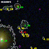Black segments are analyzed here. Roll mouse over color images to view segments. Best viewed in a wide browser window (1200 pixels or more). Download SED & P(z) plots to view larger versions.