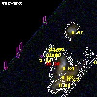 Black segments are analyzed here. Roll mouse over color images to view segments. Best viewed in a wide browser window (1200 pixels or more). Download SED & P(z) plots to view larger versions.