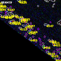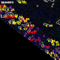 Black segments are analyzed here. Roll mouse over color images to view segments. Best viewed in a wide browser window (1200 pixels or more). Download SED & P(z) plots to view larger versions.