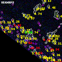 Black segments are analyzed here. Roll mouse over color images to view segments. Best viewed in a wide browser window (1200 pixels or more). Download SED & P(z) plots to view larger versions.