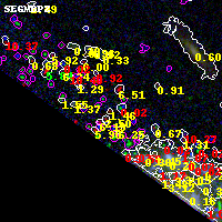 Black segments are analyzed here. Roll mouse over color images to view segments. Best viewed in a wide browser window (1200 pixels or more). Download SED & P(z) plots to view larger versions.