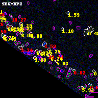 Black segments are analyzed here. Roll mouse over color images to view segments. Best viewed in a wide browser window (1200 pixels or more). Download SED & P(z) plots to view larger versions.