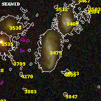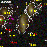 Black segments are analyzed here. Roll mouse over color images to view segments. Best viewed in a wide browser window (1200 pixels or more). Download SED & P(z) plots to view larger versions.