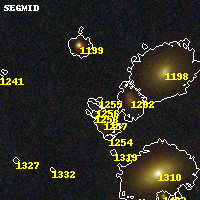 Object #1255 x,y = (3854, 4119) RA, Dec = (16:15:43.992, -6:08:17.52) = (243.93330, -6.13820) BPZ = 5.239 [0.502--5.553] type = 10.40 (SB3_B10 - SB11_A_0_l) chisq2 = 0.10 ODDS = 0.33 z_cluster = 0.203
