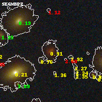 Object #1272 x,y = (3982, 4087) RA, Dec = (16:15:43.488, -6:08:19.68) = (243.93120, -6.13880) BPZ = 0.905 [0.842--0.997] type = 5.30 (ES0_B10 - Sbc_B10) chisq2 = 0.16 ODDS = 0.94 z_cluster = 0.203