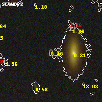 Object #1313 x,y = (2666, 4076) RA, Dec = (16:15:48.768, -6:08:20.04) = (243.95320, -6.13890) BPZ = 3.183 [0.295--3.494] type = 10.60 (SB11_A_0_l - SB3_B10) chisq2 = 0.45 ODDS = 0.54 z_cluster = 0.203