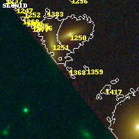 Object #1368 x,y = (2101, 4037) RA, Dec = (16:15:51.048, -6:08:22.56) = (243.96270, -6.13960) BPZ = 0.812 [0.241--5.510] type = 3.00 (Ell5_A_0) chisq2 = 0.29 ODDS = 0.08 z_cluster = 0.203