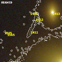 Object #1411 x,y = (2519, 3823) RA, Dec = (16:15:49.368, -6:08:35.52) = (243.95570, -6.14320) BPZ = 2.584 [2.354--2.717] type = 9.40 (SB2_B10 - SB3_B10) chisq2 = 0.09 ODDS = 0.91 z_cluster = 0.203