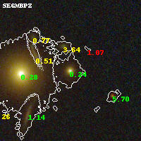 Object #1548 x,y = (3099, 3717) RA, Dec = (16:15:47.040, -6:08:41.64) = (243.94600, -6.14490) BPZ = 0.236 [0.190--0.283] type = 4.10 (Ell4_A_0 - ES0_B10) chisq2 = 0.08 ODDS = 0.97 z_cluster = 0.203