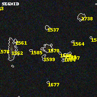 Object #1570 x,y = (3331, 3715) RA, Dec = (16:15:46.104, -6:08:42.00) = (243.94210, -6.14500) BPZ = 0.339 [0.127--3.601] type = 8.00 (SB1_B10) chisq2 = 0.67 ODDS = 0.25 z_cluster = 0.203