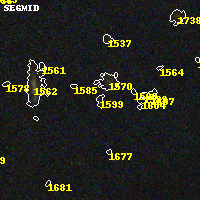Object #1599 x,y = (3322, 3697) RA, Dec = (16:15:46.128, -6:08:43.08) = (243.94220, -6.14530) BPZ = 1.073 [0.076--3.238] type = 9.50 (SB3_B10 - SB2_B10) chisq2 = 0.13 ODDS = 0.19 z_cluster = 0.203