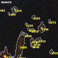 Object #1613 x,y = (3833, 3803) RA, Dec = (16:15:44.088, -6:08:36.60) = (243.93370, -6.14350) BPZ = 3.296 [0.128--3.430] type = 9.30 (SB2_B10 - SB3_B10) chisq2 = 0.78 ODDS = 0.37 z_cluster = 0.203