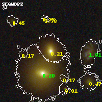 Object #2050 x,y = (3204, 3350) RA, Dec = (16:15:46.608, -6:09:03.60) = (243.94420, -6.15100) BPZ = 0.213 [0.191--0.304] type = 1.30 (Ell7_A_0 - Ell6_A_0) chisq2 = 0.34 ODDS = 0.80 z_cluster = 0.203