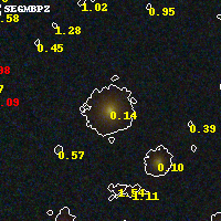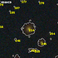 Object #214 x,y = (2224, 5551) RA, Dec = (16:15:50.544, -6:06:51.84) = (243.96060, -6.11440) BPZ = 0.137 [0.057--0.389] type = 4.30 (Ell4_A_0 - ES0_B10) chisq2 = 0.09 ODDS = 0.59 z_cluster = 0.203