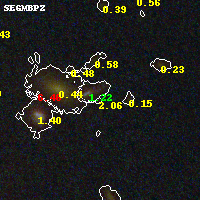 Object #2278 x,y = (4389, 2835) RA, Dec = (16:15:41.832, -6:09:34.56) = (243.92430, -6.15960) BPZ = 2.059 [1.356--9.113] type = 4.00 (Ell4_A_0) chisq2 = 0.20 ODDS = 0.10 z_cluster = 0.203