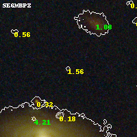 Object #2885 x,y = (3946, 2013) RA, Dec = (16:15:43.632, -6:10:23.88) = (243.93180, -6.17330) BPZ = 1.556 [0.577--2.980] type = 10.30 (SB3_B10 - SB11_A_0_l) chisq2 = 0.16 ODDS = 0.17 z_cluster = 0.203