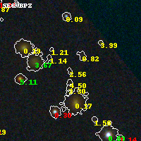 Object #638 x,y = (3914, 4911) RA, Dec = (16:15:43.752, -6:07:30.00) = (243.93230, -6.12500) BPZ = 2.558 [1.522--10.382] type = 4.00 (Ell4_A_0) chisq2 = 0.78 ODDS = 0.12 z_cluster = 0.203