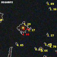 Object #791 x,y = (3801, 4670) RA, Dec = (16:15:44.208, -6:07:44.40) = (243.93420, -6.12900) BPZ = 1.165 [0.933--6.298] type = 2.70 (Ell5_A_0 - Ell6_A_0) chisq2 = 0.92 ODDS = 0.31 z_cluster = 0.203