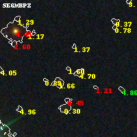 Object #911 x,y = (3860, 4619) RA, Dec = (16:15:43.968, -6:07:47.64) = (243.93320, -6.12990) BPZ = 1.598 [0.552--3.087] type = 10.50 (SB11_A_0_l - SB3_B10) chisq2 = 0.61 ODDS = 0.25 z_cluster = 0.203