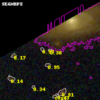 Black segments are analyzed here. Roll mouse over color images to view segments. Best viewed in a wide browser window (1200 pixels or more). Download SED & P(z) plots to view larger versions.