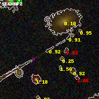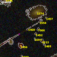 Object #1460   x,y = (2493, 6292)   RA, Dec = (16:15:49.464, -6:06:07.20) = (243.95610, -6.10200)   BPZ = 0.919 [0.291--2.410]   type = 9.70 (SB3_B10 - SB2_B10)   chisq2 = 0.65   ODDS = 0.15   z_cluster = 0.203