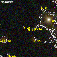 Object #1481   x,y = (2076, 6215)   RA, Dec = (16:15:51.144, -6:06:11.88) = (243.96310, -6.10330)   BPZ = 0.219 [0.112--4.231]   type = 4.00 (Ell4_A_0)   chisq2 = 0.27   ODDS = 0.10   z_cluster = 0.203