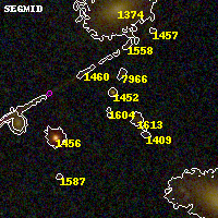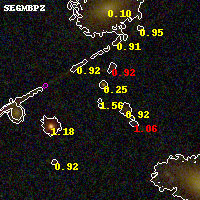 Black segments are analyzed here. Roll mouse over color images to view segments. Best viewed in a wide browser window (1200 pixels or more). Download SED & P(z) plots to view larger versions.