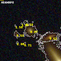 Black segments are analyzed here. Roll mouse over color images to view segments. Best viewed in a wide browser window (1200 pixels or more). Download SED & P(z) plots to view larger versions.