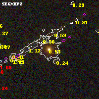 Black segments are analyzed here. Roll mouse over color images to view segments. Best viewed in a wide browser window (1200 pixels or more). Download SED & P(z) plots to view larger versions.