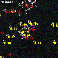Black segments are analyzed here. Roll mouse over color images to view segments. Best viewed in a wide browser window (1200 pixels or more). Download SED & P(z) plots to view larger versions.