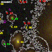 Black segments are analyzed here. Roll mouse over color images to view segments. Best viewed in a wide browser window (1200 pixels or more). Download SED & P(z) plots to view larger versions.