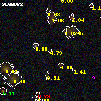 Black segments are analyzed here. Roll mouse over color images to view segments. Best viewed in a wide browser window (1200 pixels or more). Download SED & P(z) plots to view larger versions.