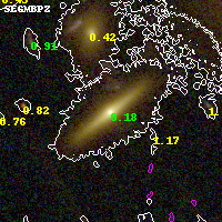 Black segments are analyzed here. Roll mouse over color images to view segments. Best viewed in a wide browser window (1200 pixels or more). Download SED & P(z) plots to view larger versions.