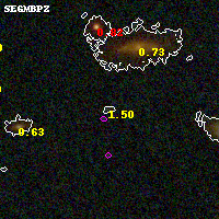 Black segments are analyzed here. Roll mouse over color images to view segments. Best viewed in a wide browser window (1200 pixels or more). Download SED & P(z) plots to view larger versions.
