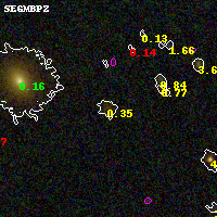 Black segments are analyzed here. Roll mouse over color images to view segments. Best viewed in a wide browser window (1200 pixels or more). Download SED & P(z) plots to view larger versions.