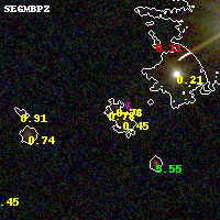 Black segments are analyzed here. Roll mouse over color images to view segments. Best viewed in a wide browser window (1200 pixels or more). Download SED & P(z) plots to view larger versions.
