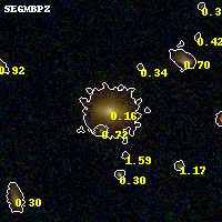 Black segments are analyzed here. Roll mouse over color images to view segments. Best viewed in a wide browser window (1200 pixels or more). Download SED & P(z) plots to view larger versions.