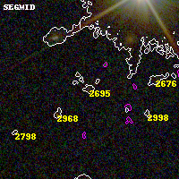 Black segments are analyzed here. Roll mouse over color images to view segments. Best viewed in a wide browser window (1200 pixels or more). Download SED & P(z) plots to view larger versions.