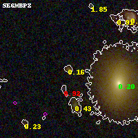Black segments are analyzed here. Roll mouse over color images to view segments. Best viewed in a wide browser window (1200 pixels or more). Download SED & P(z) plots to view larger versions.