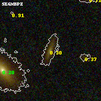 Black segments are analyzed here. Roll mouse over color images to view segments. Best viewed in a wide browser window (1200 pixels or more). Download SED & P(z) plots to view larger versions.