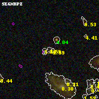 Black segments are analyzed here. Roll mouse over color images to view segments. Best viewed in a wide browser window (1200 pixels or more). Download SED & P(z) plots to view larger versions.
