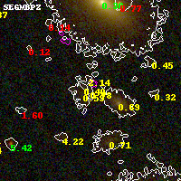 Black segments are analyzed here. Roll mouse over color images to view segments. Best viewed in a wide browser window (1200 pixels or more). Download SED & P(z) plots to view larger versions.