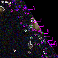Black segments are analyzed here. Roll mouse over color images to view segments. Best viewed in a wide browser window (1200 pixels or more). Download SED & P(z) plots to view larger versions.