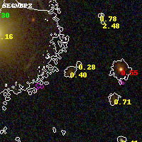 Black segments are analyzed here. Roll mouse over color images to view segments. Best viewed in a wide browser window (1200 pixels or more). Download SED & P(z) plots to view larger versions.